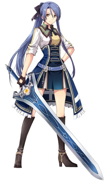 She is single-mindedly determined to do everything in her power to become stronger. She views every new challenge and encounter as an opportunity for her to learn and become a better swordsman. She has a hard time accepting those she believes are not truly dedicated or trying hard enough. She values friends such as Rean, a fellow student of the sword, for the opportunity to grow as swordsmen together, and respects anyone who shows great strength.